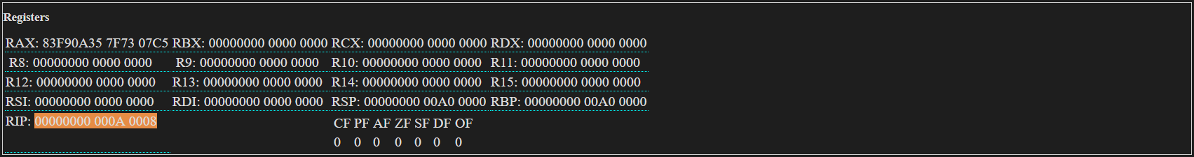 Segment registers DS, ES, FS, GS, SS are not used.